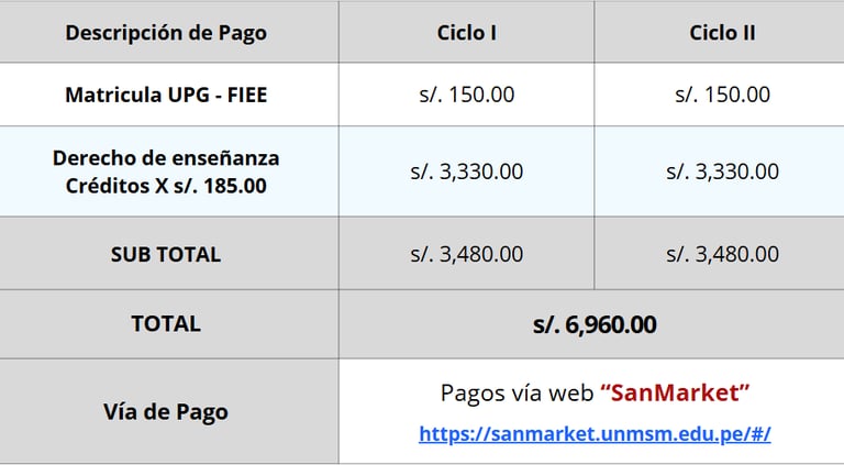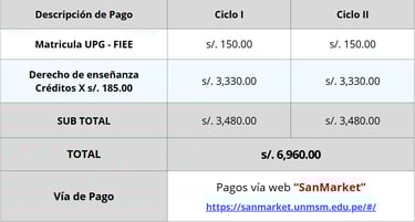 El programa tiene una duración total de dos semestres académicos , distribuidos en: